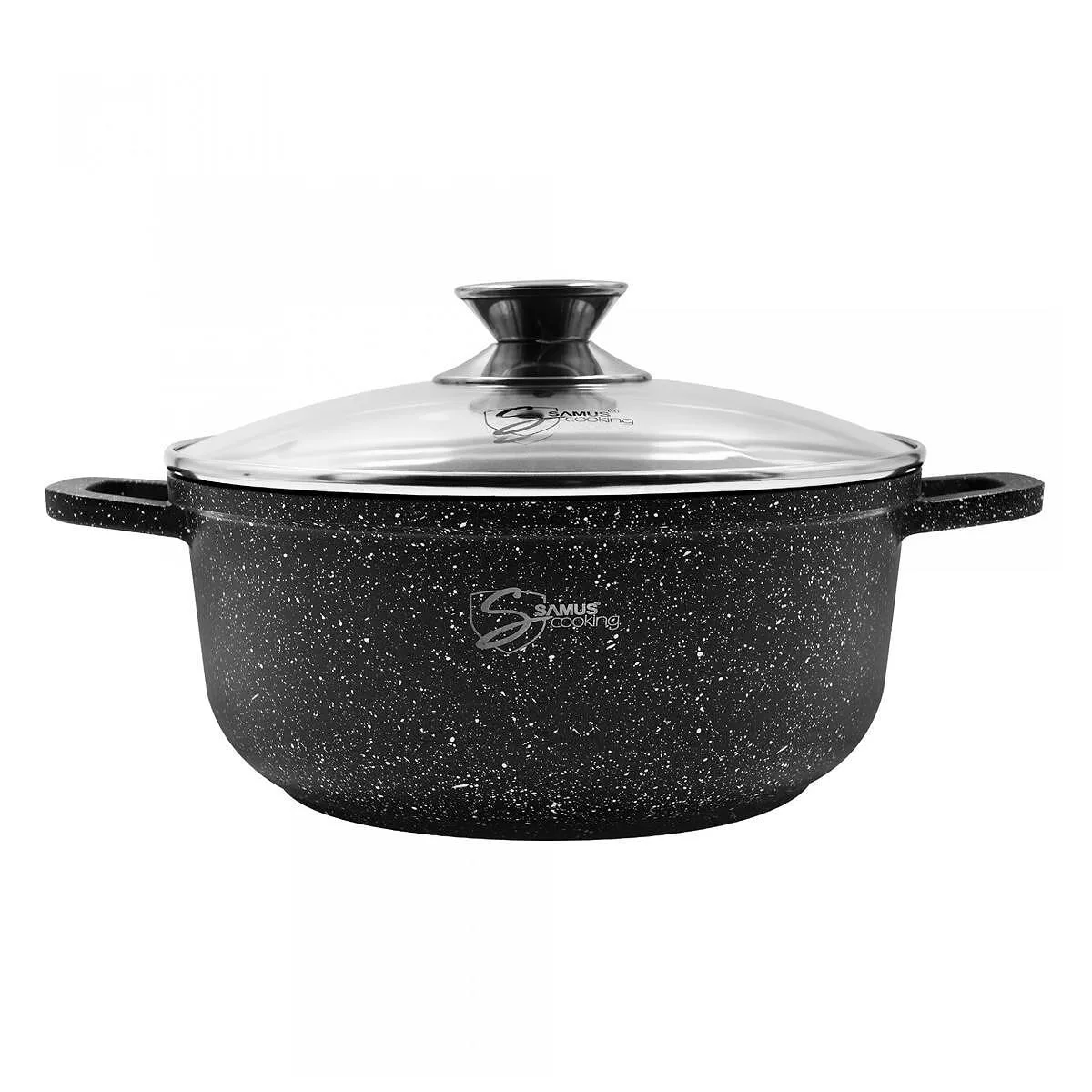 Тенджера с обем 7.7 литра. Диаметър Ø 28 см. Незалепващо покритие. Закалено стъкло на капака.