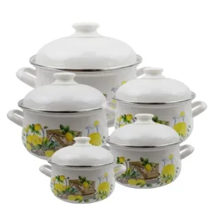 Комплект Емайлирани тенджери BONERA – 10 части предлага разнообразие от размери, подходящи за всички видове готвене. Изработени с висококачествен емайл покритие и индукционно дъно, тези дълбоки тумбести тенджери гарантират равномерно разпределение на топлината и лесно почистване. Комплектът включва пет различни размери от 1,9 до 7,0 литра, идеални за супи, яхнии и печива. Разнообразните разцветки придават стилен вид на кухнята ви, докато здравата конструкция осигурява дълготрайна употреба и функционалност.