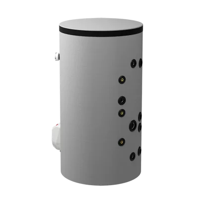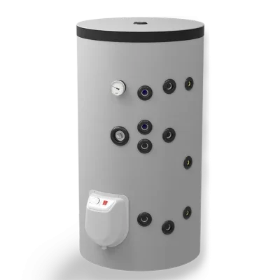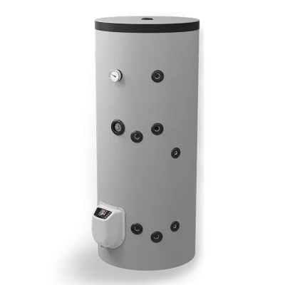– с две серпентини – за комбинирано използване на два топлоизточника. Значителни икономии на електроенергия могат да се постигнат чрез подходящо комбиниране на режимите на отопление през всеки сезон. Горната серпентина работи в проточен режим и се свързва към и котел или камина с водна риза; долната серпентина работи в акумулиращ режим и е подходяща за свързване към слънчев колектор или термопомпа.
