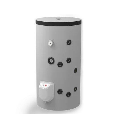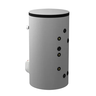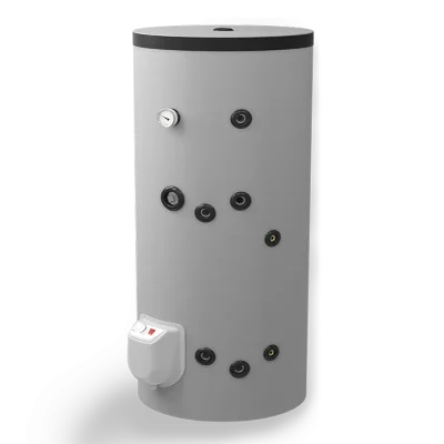 – с две серпентини – за комбинирано използване на два топлоизточника. Значителни икономии на електроенергия могат да се постигнат чрез подходящо комбиниране на режимите на отопление през всеки сезон. Горната серпентина работи в проточен режим и се свързва към и котел или камина с водна риза; долната серпентина работи в акумулиращ режим и е подходяща за свързване към слънчев колектор или термопомпа.