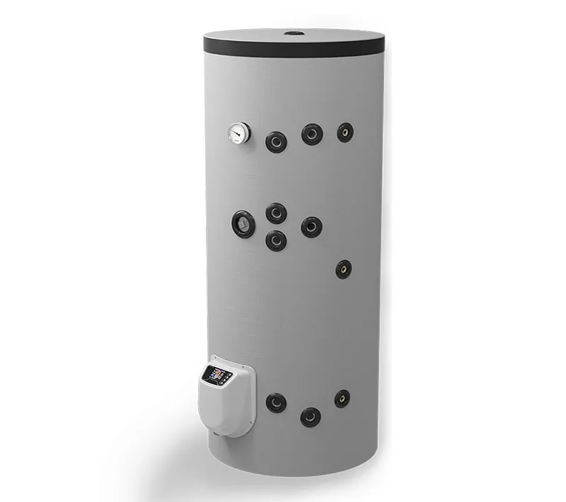 одящо комбиниране на режимите на отопление през всеки сезон. Горната серпентина работи в проточен режим и се свързва към котел или камина с водна риза; долната серпентина работи в акумулиращ режим и е под?