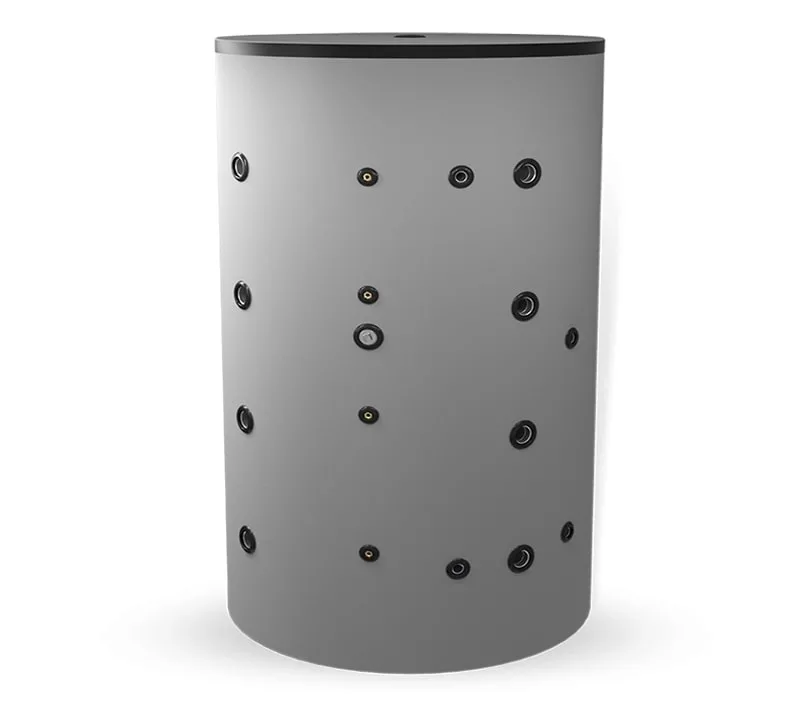 Този модел буферен съд предоставя възможност да акумулирате топлинна енергия едновременно от два различни топлоизточника, например слънчева система и котел.Проточният принцип на загряване и големия капацитет на уреда осигуряват значително количество битова гореща вода. Гофрираният топлообменник е с голяма контактна площ и е изработен от т.нар. медицинска ?