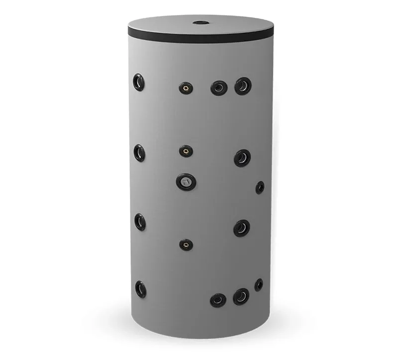 Този модел буферен съд предоставя възможност да акумулирате топлинна енергия едновременно от два различни топлоизточника, например слънчева система и котел.Проточният принцип на загряване и големия капацитет на уреда осигуряват значително количество битова гореща вода. Гофрираният топлообменник е с голяма контактна площ и е изработен от т.нар. медицинска ?