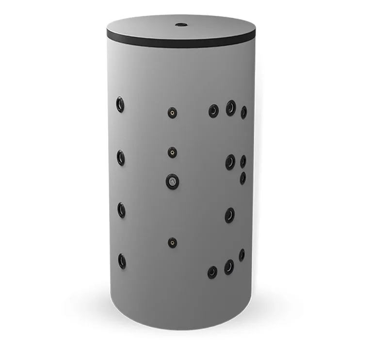 Този модел буферен съд позволява да акумулирате топлинна енергия едновременно от няколко различни топлоизточника, например слънчева система, термопомпа, котел и други. Проточният принцип на загряване осигурява значително количество битова гореща вода. Гофрираният топлообменник е с голяма контактна площ и е изработен от т.нар. медицинска ?