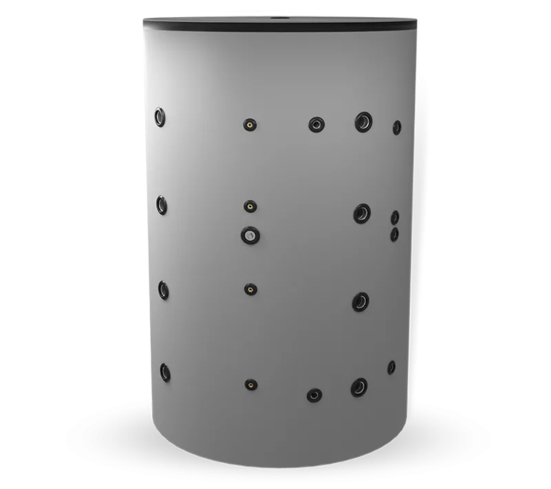 Този модел буферен съд предоставя възможност да акумулирате топлинна енергия едновременно от два различни топлоизточника, например слънчева система и котел.Проточният принцип на загряване и големия капацитет на уреда осигуряват значително количество битова гореща вода. Гофрираният топлообменник е с голяма контактна площ и е изработен от т.нар. медицинска хром-никелова стомана марка АISI316L. Това гарантира запазването на питейните качества на топлата вода през целия срок на експлоатация на уреда.