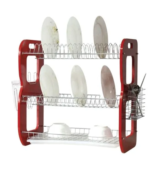 Висококачествена хромирана сушилка за съдове EK-6163 • идеалното решение за вашата кухня. С три реда за съдове, поставка за чаши и прибори, и удобна тава, тази сушилка предлага максимална функционалност и стил. Размери: 51 x 50 x 23 см.