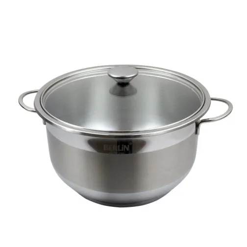 Дълбока Тенджера BERLIN – със стъклен капак, висококачествен инокс, 26 см