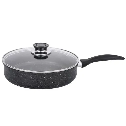 Дълбок тиган със стъклен капак ЕK-D28 M, Мраморно незалепващо покритие, 28 см