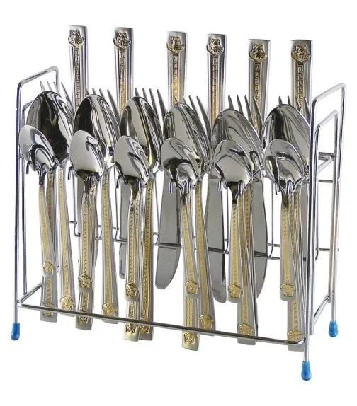 Открийте перфектния комплект прибори за вашата кухня с Комплект ЕК-FTM 24. Този изискан комплект съдържа 24 части, включително 6 лъжици (21 см), 6 вилици (21 см), 6 ножове (22,5 см) и 6 чаени лъжички (14,5 см). Всички прибори са изработени от висококачествена, неръждаема стомана, която гарантира дълготрайност и устойчивост на корозия. Комплектът включва и удобна стойка/органайзер с размери 25х21 см, която ще поддържа вашите прибори подредени и лесно достъпни. Подходящи за измиване в съдомиялна машина с течен препарат за съдове, тези прибори ще добавят стил и функционалност към всяка трапеза.