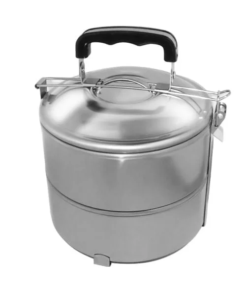 Комплект кутии за храна • метална • 2 части EK-GG2. Този комплект включва котелка с метална конструкция, идеална за пренасяне на храна. Изработен от неръждаема стомана, комплектът съдържа 2 бр. канчета/купи с размери 18/6,5 см. Перфектен избор за пикници, къмпинг или ежедневна употреба.