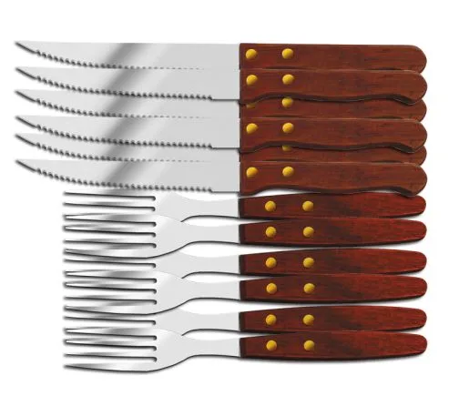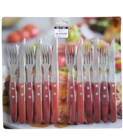 Комплект ножове и вилици EK-7 MX – 12 части, Неръждаема стомана, Дървени дръжки