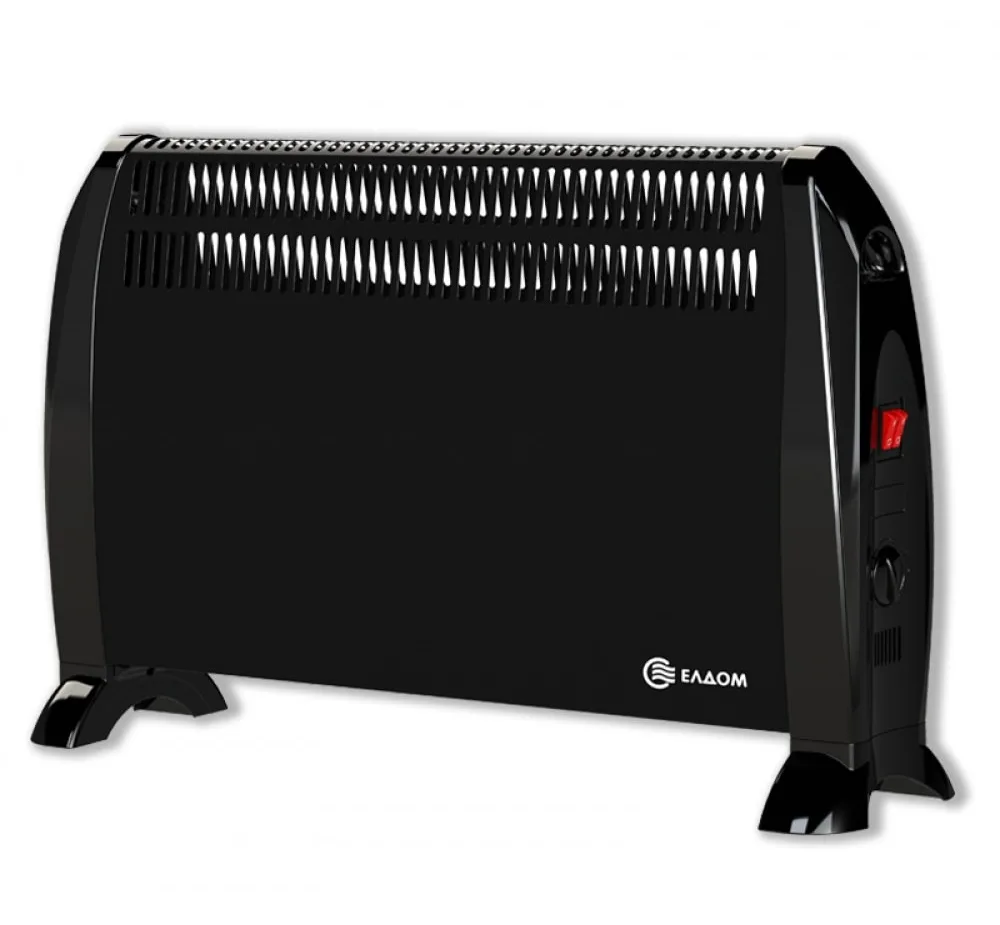 Подов конвектор Eldom CFV 2000 притежава 3 степени на мощност: 800W, 1200W и 2000W. Компактният му дизай го прави лесно преносим в различни помещения. Уникален дизайн с две лица в черен цвят. Разполага с прецизен терморегулатор и термоограничител за защита от прегряване. Стабилните крачета гарантират безопасността на уреда. Моделът е оборудван с вграден вентилатор, благодарение на който по-бързо се затопля помещението.
