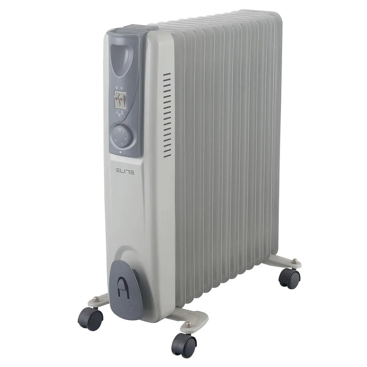 Маслен радиатор с мощност 2500W. Три настройки на нагряване. 13 ребра. Регулируемо управление на термостата. |