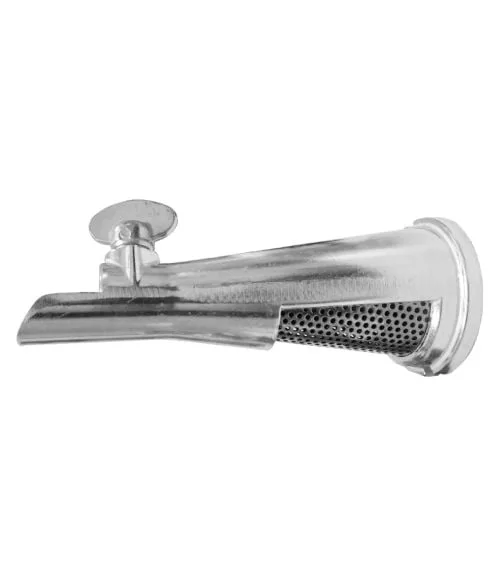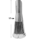 Накрайник за доматен сок от неръждаема стомана. Състои се от две части и е с вътрешен диаметър на прикрепяне 5,5 см и външен диаметър 7 см. Дължината му е 17 см, което го прави удобен и лесен за употреба. Перфектен за приготвяне на свеж и вкусен доматен сок. Подобрете вашето кулинарно изживяване с този висококачествен накрайник!