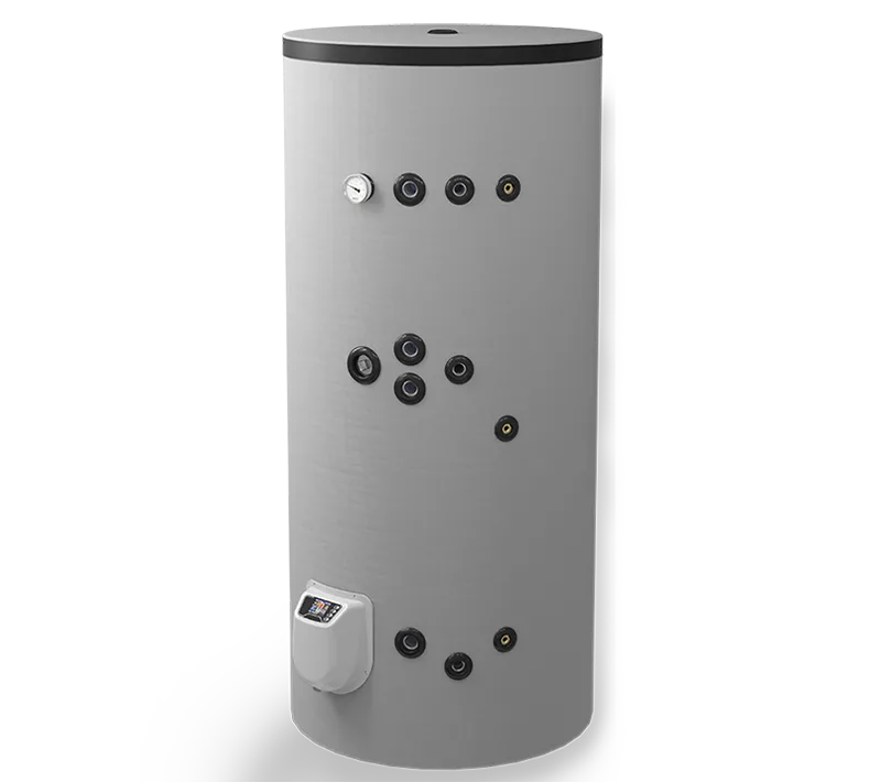 – с две гофрирани серпентини от неръждаема стомана марка AISI 316L за комбинирано използване на два топлоизточника. Значителни икономии на електроенергия могат да се постигнат чрез подходящо комбиниране на режимите на отопление през всеки сезон. Горната серпентина работи в проточен режим и се свързва към и котел или камина с водна риза; долната серпентина работи в акумулиращ режим и е подходяща за свързване към слънчев колектор или термопомпа.