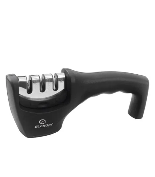 Точило за нож EK-SH-73 • Висококачествено точило за ножове 3 в 1. Идеално за заточване на керамични и стоманени ножове, предлага грубо и фино заточване за перфектен резултат. Дизайнът му осигурява комфорт и стабилност по време на употреба. Изработено от издръжлива неръждаема стомана и гумирана удобна дръжка за по-добър захват. Размери: 20,0 х 5,0 х 7,3 см. Подобрете остротата на вашите ножове с EK-SH-73!