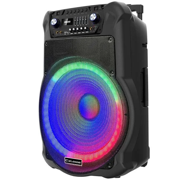 Преносима Тонколона EK-1818 • Мощен 18-инчов високоговорител с LED осветление и два безжични микрофона. Новият модел луксозна тонколона ЕК-1818 предлага дисплей, FM тунер, дистанционно управление и Bluetooth функция. С вградена презаредима батерия, тази тонколона е идеална за улични музиканти, купони, презентации и караокета в хотели и ресторанти. Супер мощен 18-инчов басов говорител и 5-инчов пищял осигуряват екстра бас и приоритет за микрофон. Включва функции като USB, FM, SD карта, TWS, AUX вход и EQ. Лесно преносима с разтегателна дръжка и колелца. Максимална мощност: 2400W.