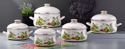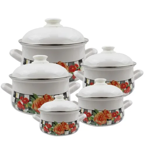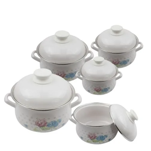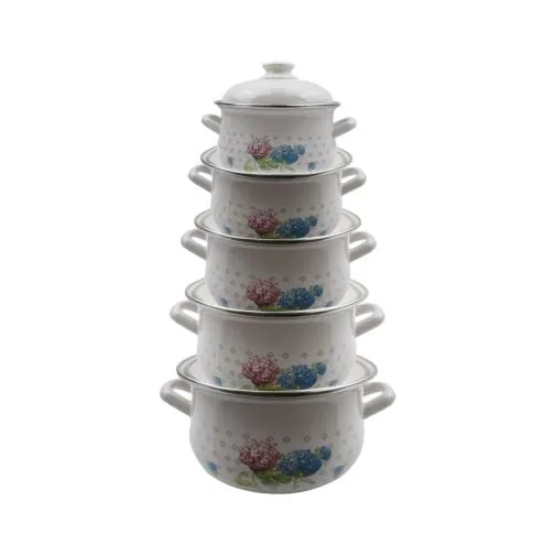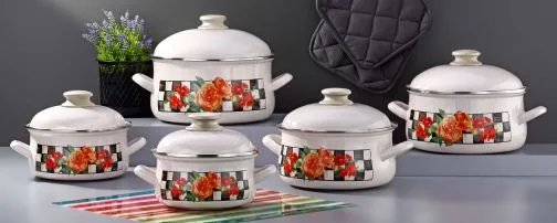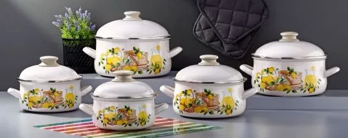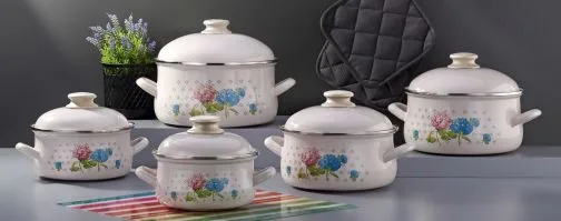 Комплект Емайлирани тенджери BONERA – 10 части предлага разнообразие от размери, подходящи за всички видове готвене. Изработени с висококачествен емайл покритие и индукционно дъно, тези дълбоки тумбести тенджери гарантират равномерно разпределение на топлината и лесно почистване. Комплектът включва пет различни размери от 1,9 до 7,0 литра, идеални за супи, яхнии и печива. Разнообразните разцветки придават стилен вид на кухнята ви, докато здравата конструкция осигурява дълготрайна употреба и функционалност.