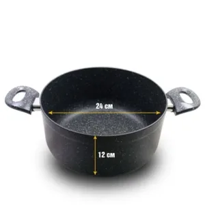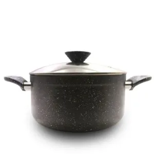 Тенджера ЕК-2412 GM с мраморно покритие и индукционно дъно • идеалният избор за вашата кухня. Изработена от висококачествен и здрав алуминий, тази дълбока тенджера предлага устойчиво и незалепващо мраморно покритие, което осигурява равномерно загряване на храната. С термоизолирани дръжки и термоустойчив стъклен капак с отвор за пара, тя е съвместима с всички източници на топлина и подходяща за почистване в съдомиялна машина. С дебелина от 2,0 мм и размери 24х12 см, тази тенджера с обем 5,4 литра е перфектна за приготвяне на разнообразни ястия.
