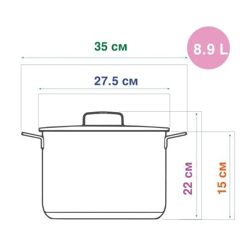 Тенджера инокс ЕК-2615 SS, Метален капак, 7 Слойно Индукционно дъно, Размери 26х15,5 см, Полезен обем-8 Литра, Мерителна скала отвътре