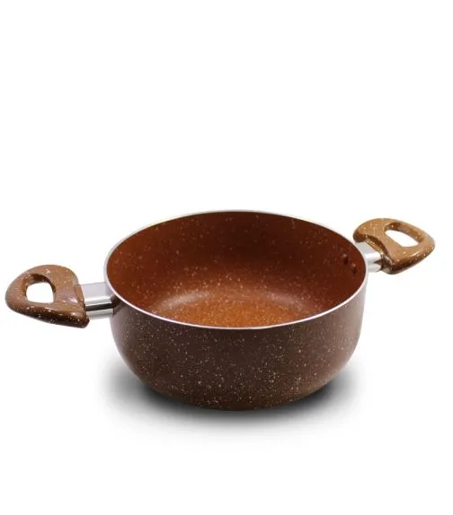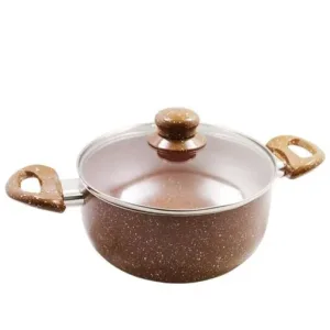 Тази висококачествена тенджера е изработена от здрав алуминий и разполага с мраморно покритие, което е устойчиво и незалепващо. С равномерното си загряване и термоизолирани дръжки, тя е идеална за всякакви кулинарни предизвикателства. Термоустойчивият стъклен капак с отвор за пара позволява лесно наблюдение на готвенето. Тенджерата е съвместима с всички източници на топлина, с изключение на индукционни котлони, и е подходяща за почистване в съдомиялна машина. С дебелина от 2,2 мм и размери 22 см в диаметър и 9,5 см височина, тя предлага обем от 3,6 литра до ръба.