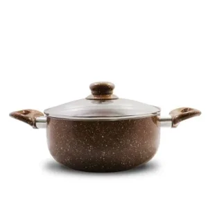 Тенджера мрамор кафява ЕК-26 MBR, Стъклен капак, Висококачествен алуминий, Незалепващо покритие, 5,6 литра, 26 х10,5 см