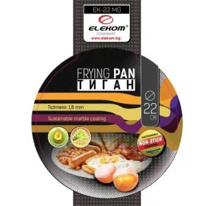 Открийте перфектния помощник за вашата кухня с Дълбок Тиган ЕК-22 MG! С мраморно незалепващо покритие отвътре, този тиган е устойчив и лесен за почистване, включително и в миялна машина. С диаметър от 22 см и дебелина на стените от 1,8 мм, той е идеален за приготвяне на разнообразни ястия. Подходящ за всички видове котлони • газови, халогенни, електрически и стъклокерамични. Изработен от висококачествен алуминий, тиганът не съдържа PTFE, PFOA и тежки метали, което го прави безопасен за вашето здраве.