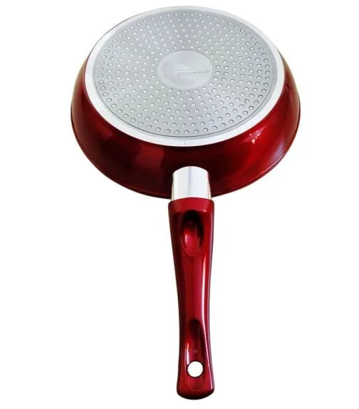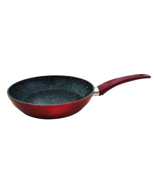 Дълбокия тиган ЕК-225 R е изработен от висококачествен алуминий с мраморно каменно покритие, този тиган е устойчив и незалепващ, което го прави идеален за приготвяне на разнообразни ястия. С размери 22 х 5 см и дебелина от 2,5 мм, той осигурява равномерно загряване и е подходящ за използване на индукционни котлони. Тиганът е лесен за почистване и може да се мие в миялна машина. Без съдържание на PTFE, PFOA и тежки метали, той е безопасен за вашето здраве. Със своя червен металик отвън, този тиган ще добави стил и функционалност към всяка кухня.