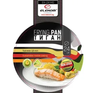 Дълбок Тиган ЕК-24 MG с мраморно незалепващо покритие отвътре, този тиган е устойчив и лесен за почистване, включително и в миялна машина. С диаметър от 24 см и дебелина на стените от 1,8 мм, той е идеален за приготвяне на разнообразни ястия. Подходящ за всички видове котлони • газови, халогенни, електрически и стъклокерамични.