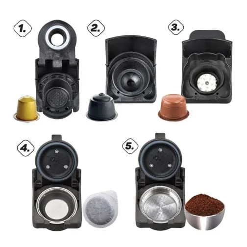 • 5 адаптера: за мляно кафе, кафе-капсули, кафе торбичка
