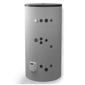 – с две серпентини – за комбинирано използване на два топлоизточника. Значителни икономии на електроенергия могат да се постигнат чрез подходящо комбиниране на режимите на отопление през всеки сезон. Горната серпентина работи в проточен режим и се свързва към и котел или камина с водна риза; долната серпентина работи в акумулиращ режим и е подходяща за свързване към слънчев колектор или термопомпа.
