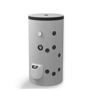 – с две серпентини – за комбинирано използване на два топлоизточника. Значителни икономии на електроенергия могат да се постигнат чрез подходящо комбиниране на режимите на отопление през всеки сезон. Горната серпентина работи в проточен режим и се свързва към и котел или камина с водна риза; долната серпентина работи в акумулиращ режим и е подходяща за свързване към слънчев колектор или термопомпа.