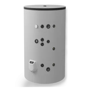 – с две серпентини – за комбинирано използване на два топлоизточника. Значителни икономии на електроенергия могат да се постигнат чрез подходящо комбиниране на режимите на отопление през всеки сезон. Горната серпентина работи в проточен режим и се свързва към и котел или камина с водна риза; долната серпентина работи в акумулиращ режим и е подходяща за свързване към слънчев колектор или термопомпа.