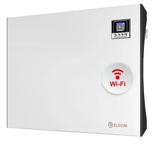 Всички модели са с иновативно електронно управление с вграден Wi-Fi комуникационен модул и с елегантен цветен дисплей. Чрез приложението ELDOM можете да контролирате и управлявате онлайн цялото разнообразие от функции на уреда. За нас е удоволствие да Ви информираме, че това е първата група продукти от мащабния проект за онлайн управление на всички уреди ЕЛДОМ в целия дом, наречен EldomSmartHubs. Това го прави идеалния панелен конвектор както за малки, така и за големи помещения. Използвайте го за отопление на спалня, дневна или дори в офиса, като същевременно намалите раз?