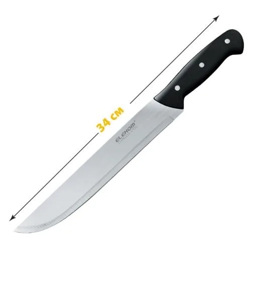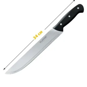 Универсален кухненски нож EK-P 78-9 с дължина на острието 22,9 см и обща дължина 34 см. Изработен от висококачествена неръждаема стомана с дебелина на острието 2 мм, този нож е идеален за всякакви кухненски задачи. Удобната матова черна дръжка осигурява стабилен и комфортен захват.