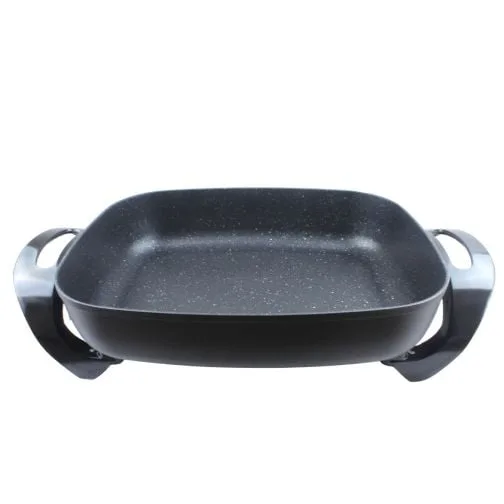 Открийте универсалния електрически тиган ЕК-3038 M, идеален за приготвяне на разнообразни ястия като месо, риба, морски дарове, зеленчуци, пица и супи. С размери 38 x 30,50 см и дълбочина 8.7 см, този тиган предлага достатъчно пространство за готвене. Незалепващото мраморно покритие и стъкленият термо капак осигуряват лесно почистване и контрол върху процеса на готвене. Регулаторът на температурата и топлоизолираните дръжки гарантират безопасност и удобство. С мощност от 1500 W и захранване 220V/50Hz, този тиган е перфектен избор за всяка кухня. Размер на опаковката: 53x15x33 cm.