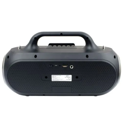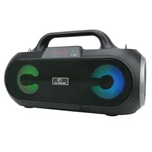 Преносима Тонколона EK-3351 с мощност от 8W+8W и звуково налягане ≥85 dB, тази тонколона предлага кристално чист звук и впечатляваща сила. Сменящите се LED светлини в лилаво, синьо, зелено и червено създават уникална атмосфера за всяко събитие. Благодарение на Bluetooth, FM радио и караоке функция, забавлението е гарантирано. Включени са USB/SD/AUX входове, LED дисплей, дистанционно управление и микрофон. С батерия от 1200 mAh *2 бр. и удобен колан за носене на рамо, тази тонколона е перфектна за всяко парти или събиране. Размери: 37*15*21 см. Насладете се на музиката навсякъде с EK-3351!