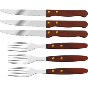 Ключови думи: комплект ножове и вилици, 6 части, висококачествена неръждаема стомана, дървена дръжка, вилици за хранене, ножове за месо, кухненски комплект.