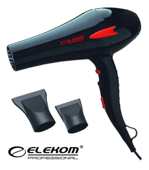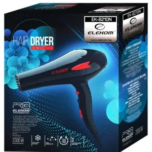Открийте професионалния сешоар ЕЛЕКОМ ЕК-8210 N в елегантен черен цвят, с мощност от 2300W. Този сешоар предлага две скорости и два размера концентратори за максимална гъвкавост при стилизиране. С вграден генератор на йони, той осигурява гладка и блестяща коса без статично електричество. Сешоарът разполага с бутон за студен въздух и две степени на регулиране на температурата и въздушната струя, което го прави идеален за всякакъв тип коса.