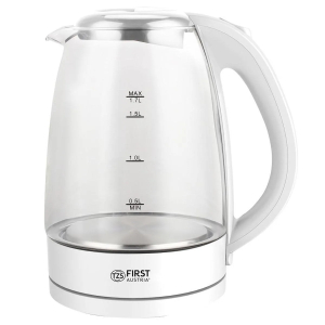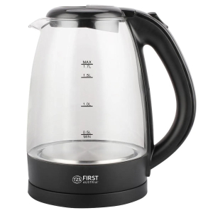 Стъклена електрическа кана с мощност 2200W. Автоматично изключване. Вместимост 1.7 литра. Скрит нагревателен елемент.